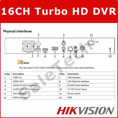 - 1 gigabit Ethernet network interface (for DS-7216HQHI-F1/N)